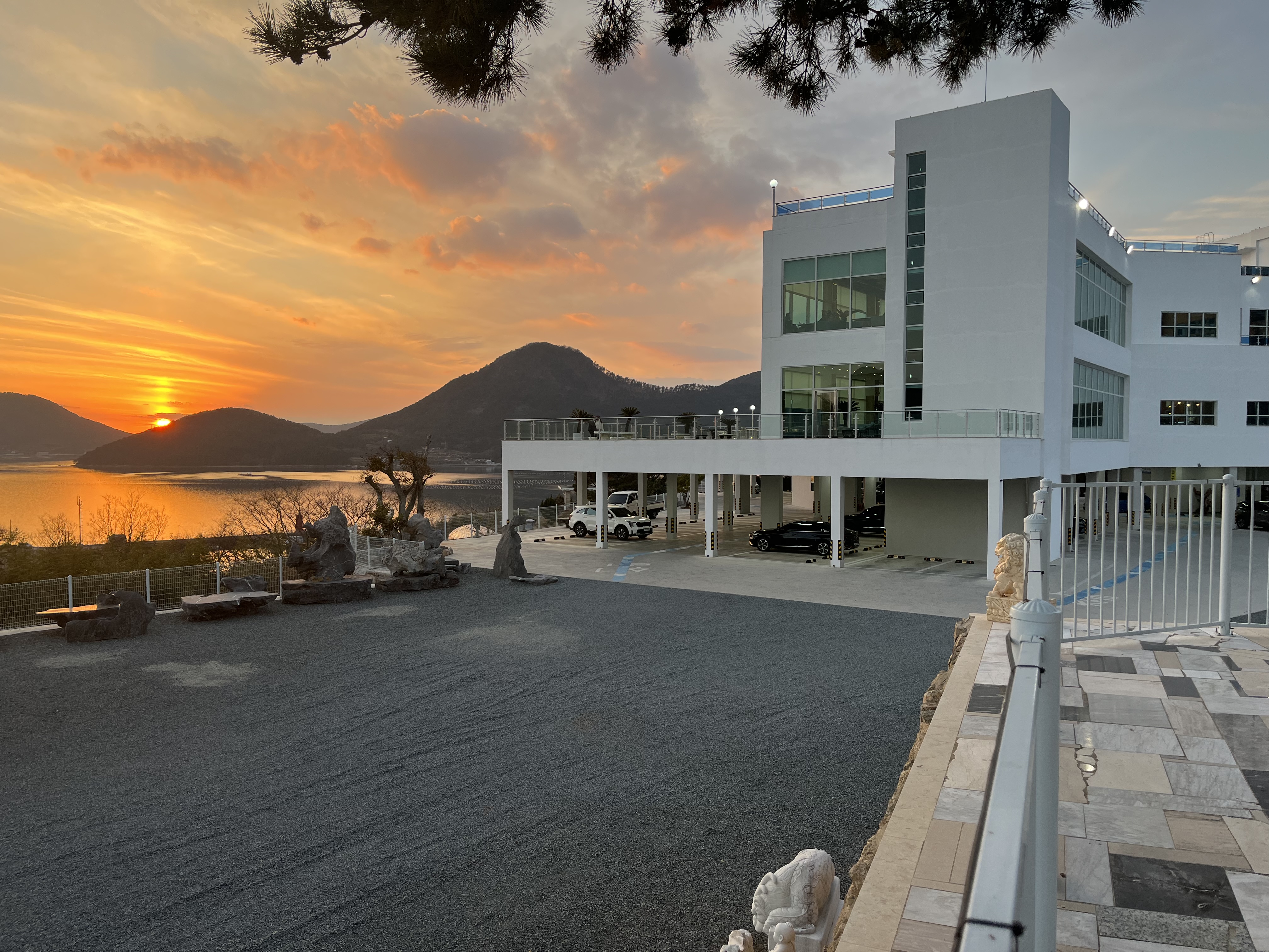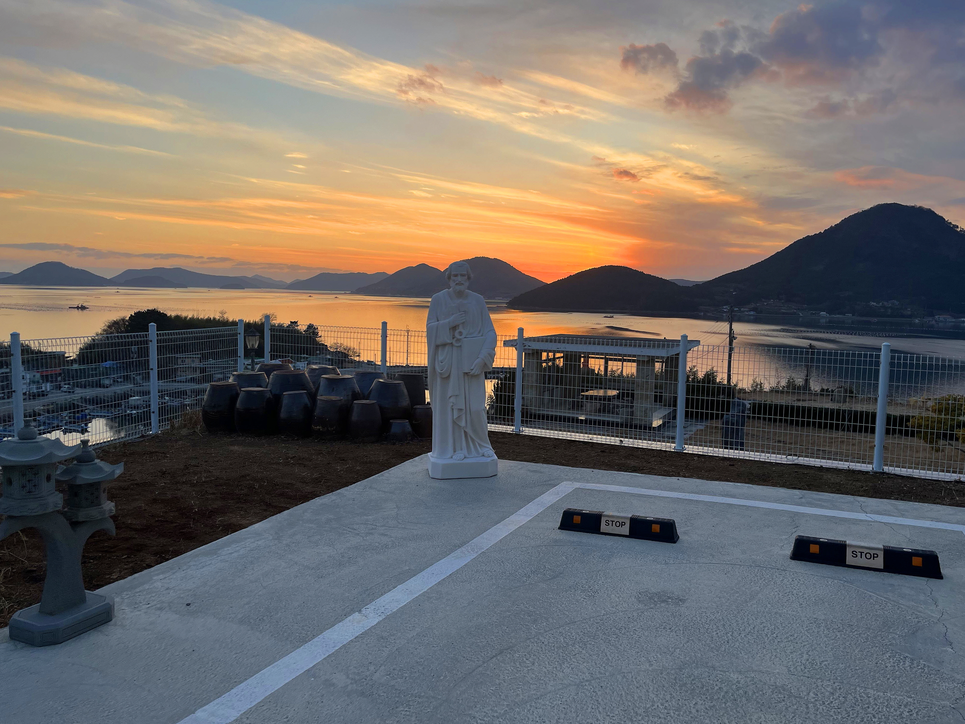 바닷가의 노을과 잘 어울리네요.